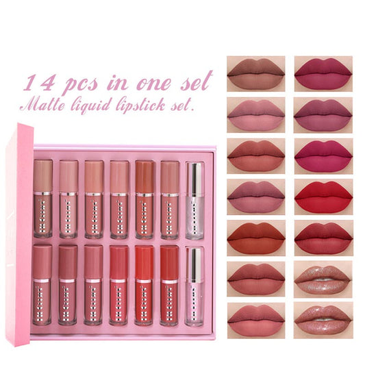 14-color lip gloss gift box set matte liquid lipstick