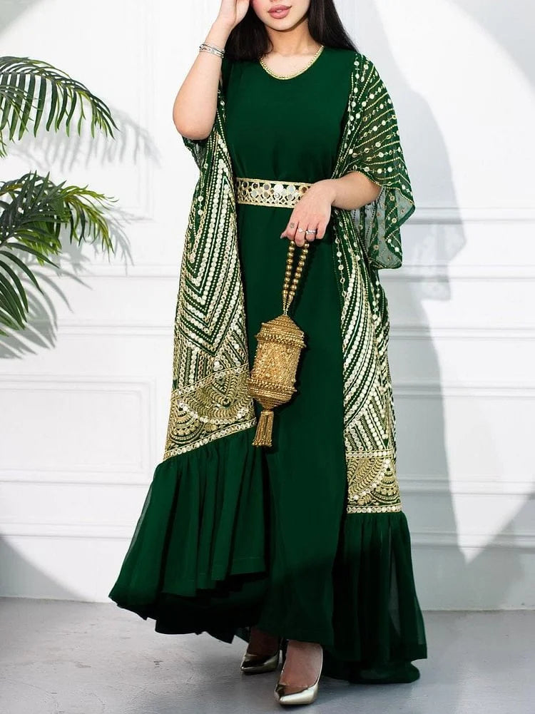 نقدم لكم فستانًا أنيقًا وأنيقًا ومجموعة تونيك! يتميز الفستان بياقة دائرية ومزين بالترتر اللافت للنظر لإضفاء لمسة من التألق. تم تصميم التونيك بنفس تفاصيل الترتر الأنيقة، مما يرفع المجموعة بأكملها إلى مستوى جديد من الرقي. مثالية للمناسبات الخاصة أو الخروج ليلاً، ومن المؤكد أن هذه المجموعة ستجعلك مركز الاهتمام.