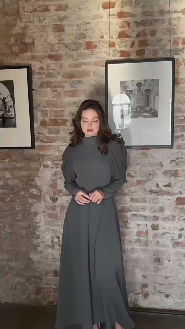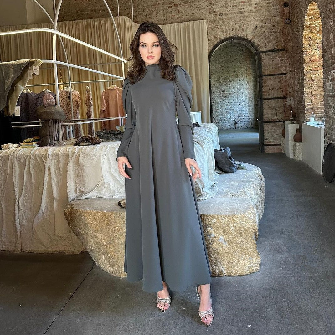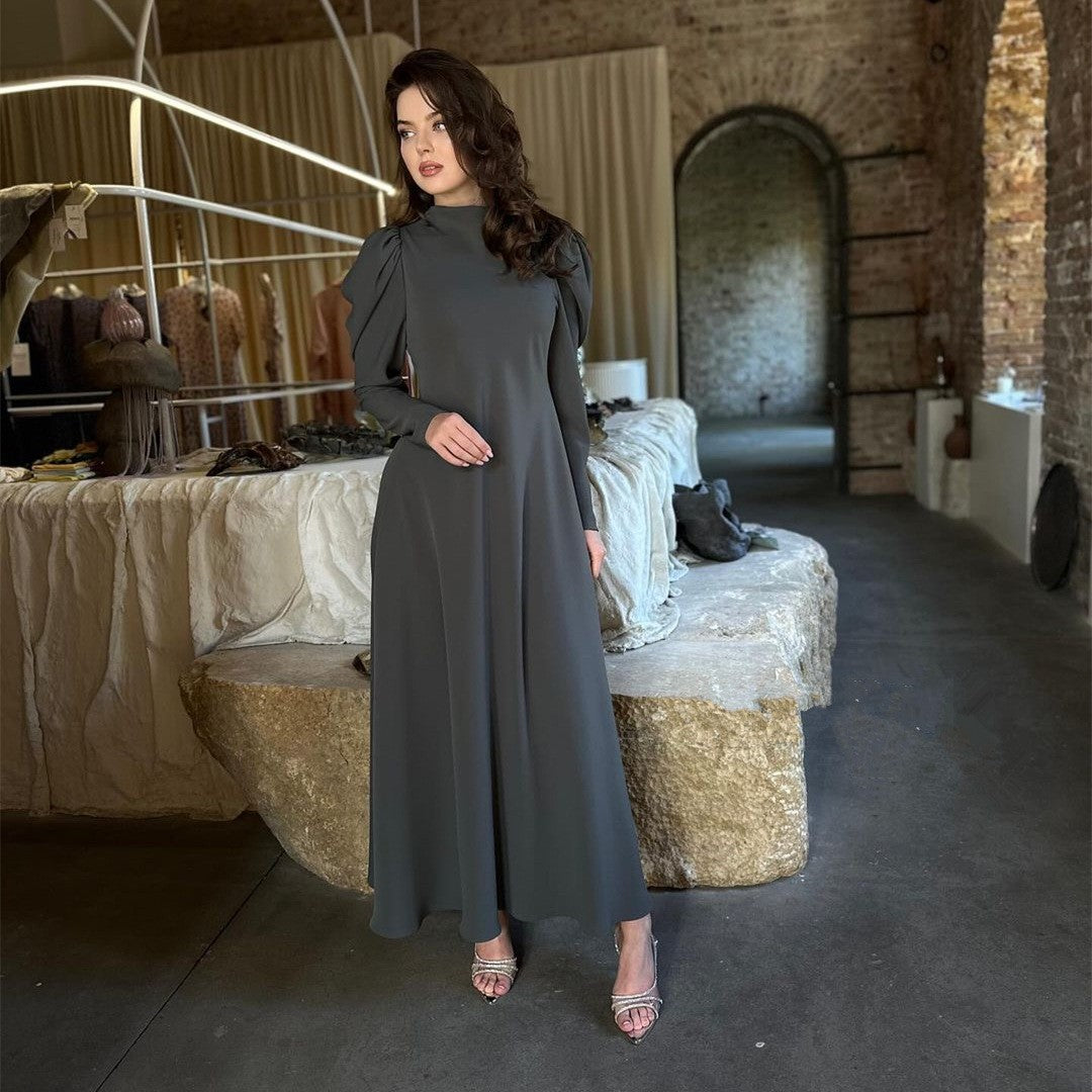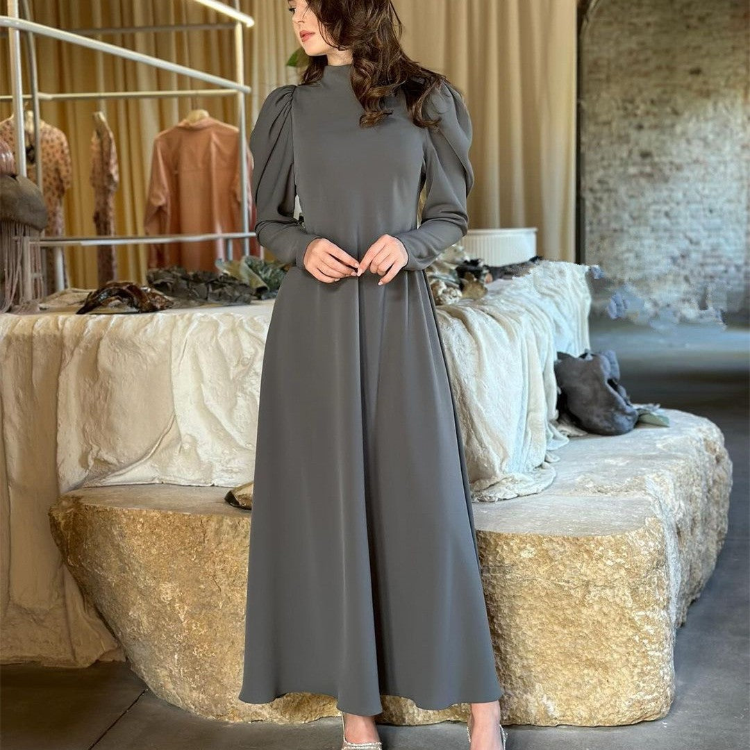 فستان ركاب فضفاض أنيق بأكمام طويلة ومطوي