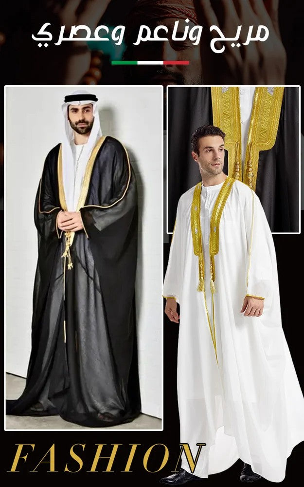 جلابية رجالي فاخر أنيق ومطرز بطباعة ذهبية