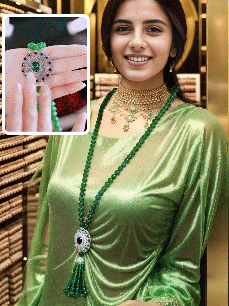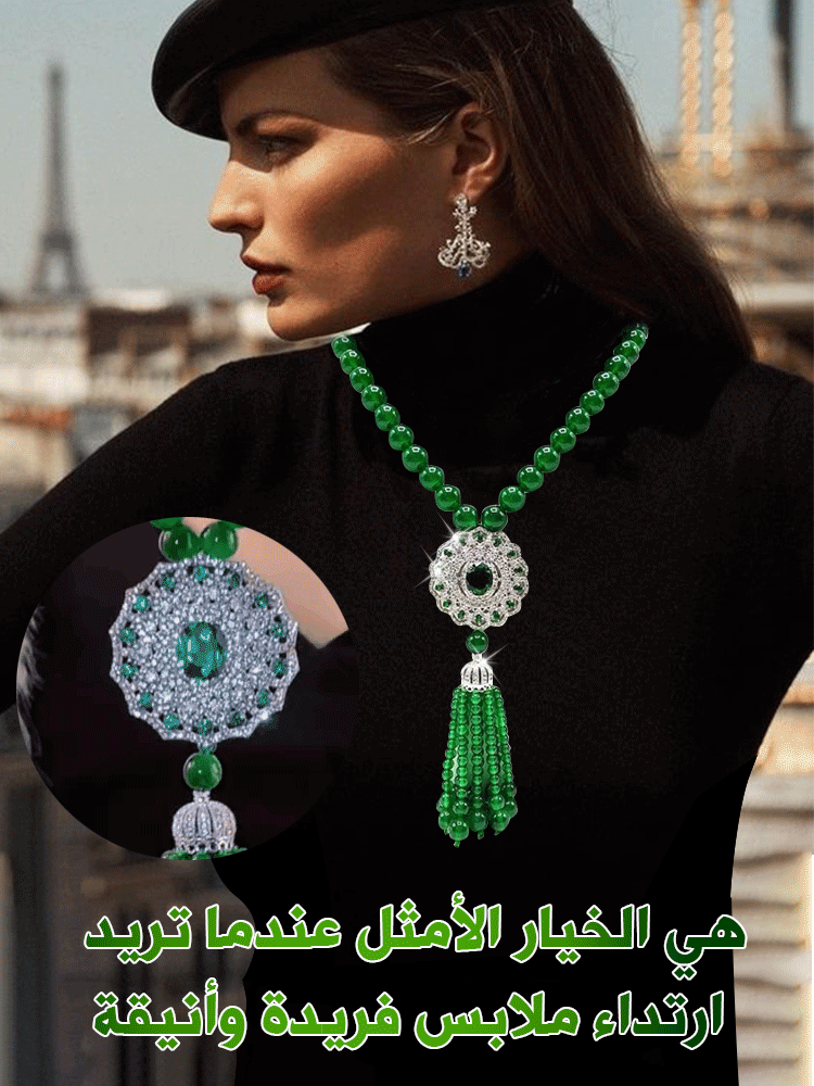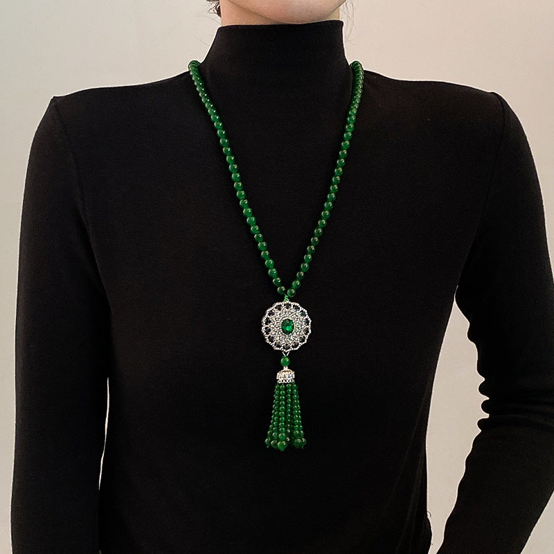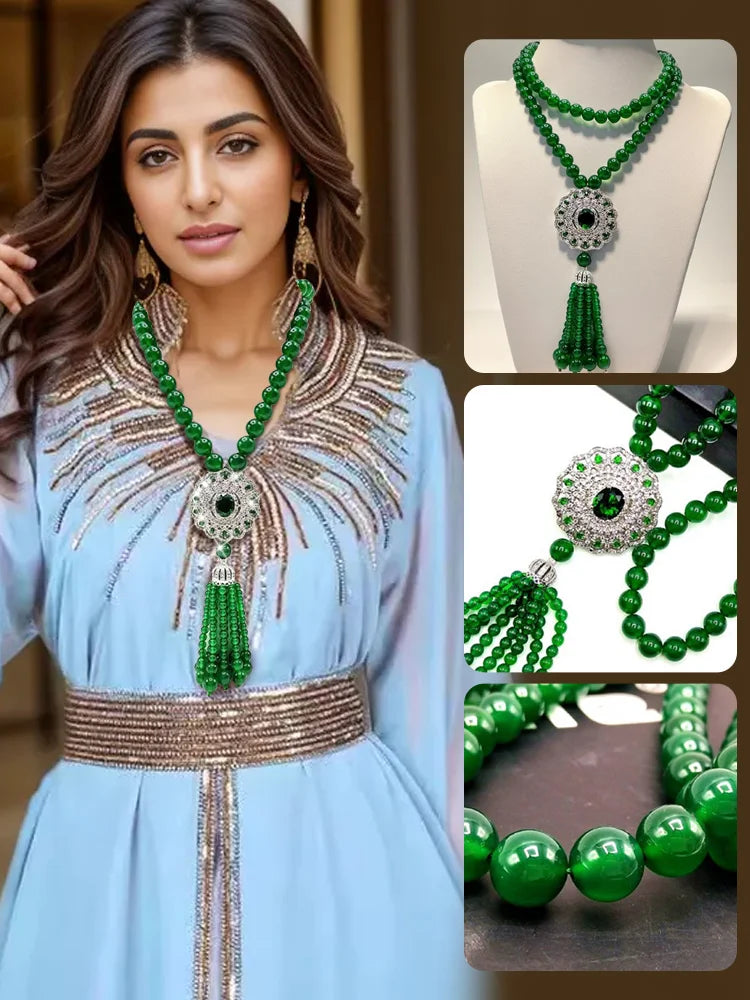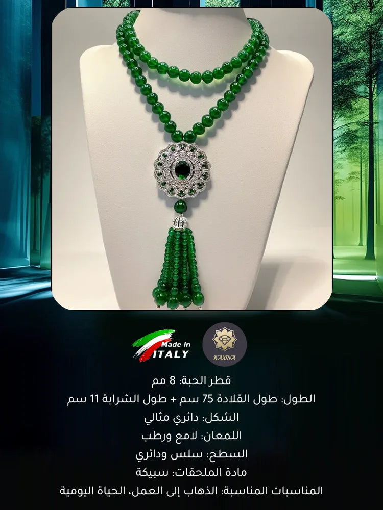 قلادة طويلة إيطالية أنيقة من الزمرد مع الشرابة