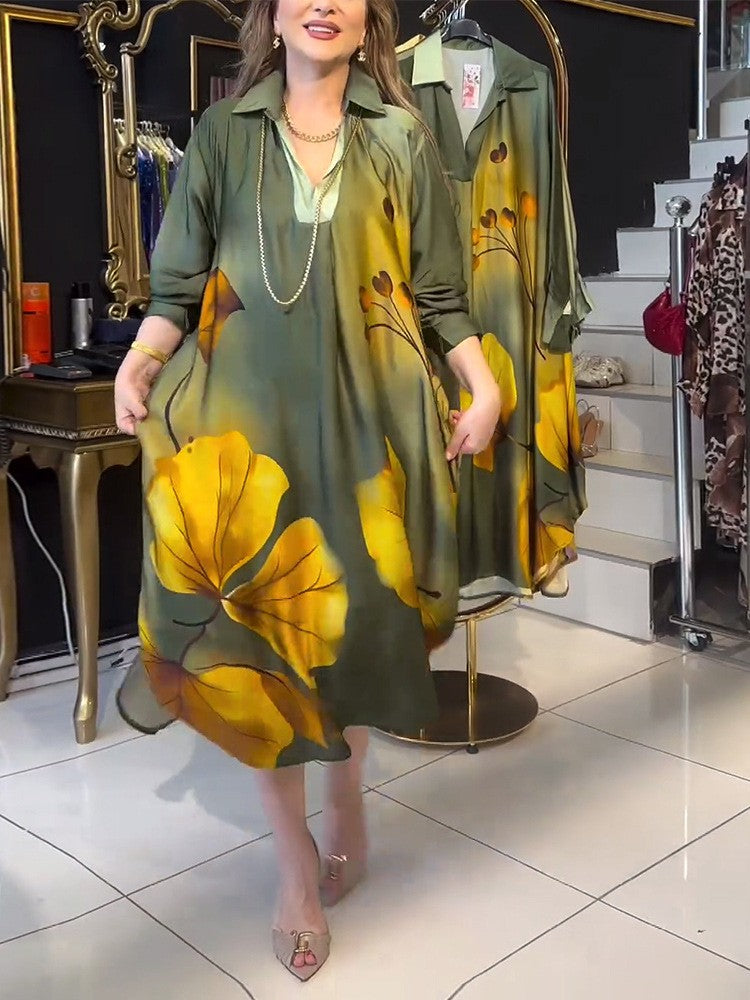 فستان فضفاض بطبعة تدرجات اللون الأخضر