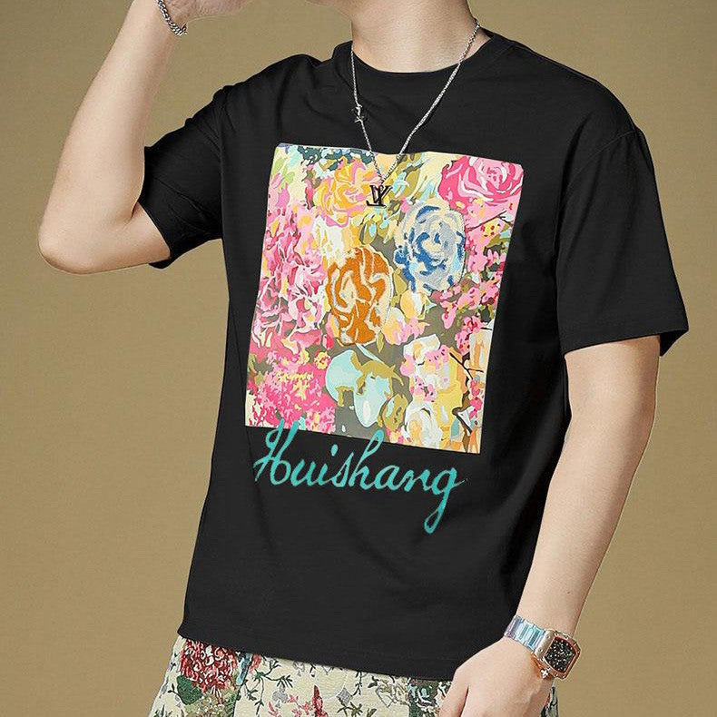 Men's Fashion Printed Shorts and Short Sleeves Suit