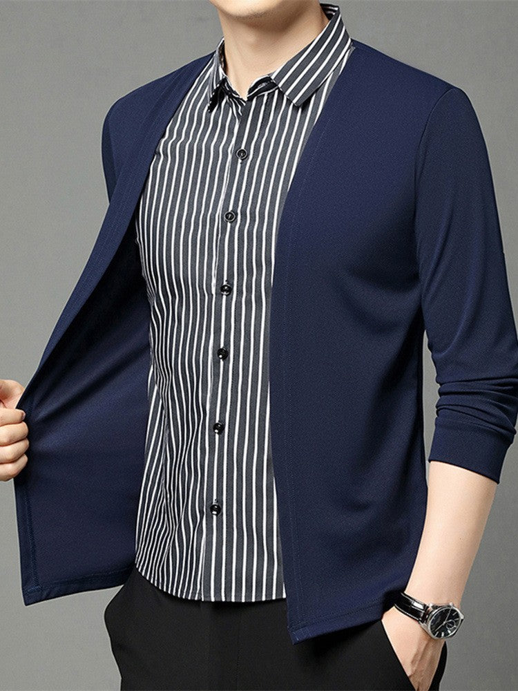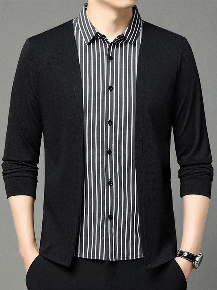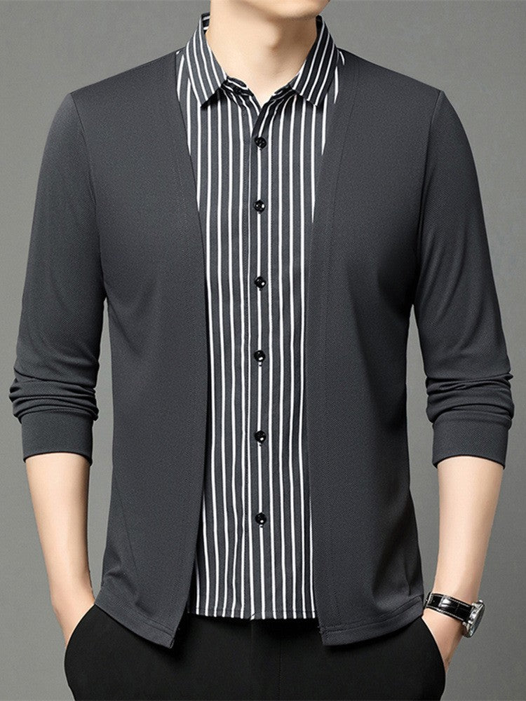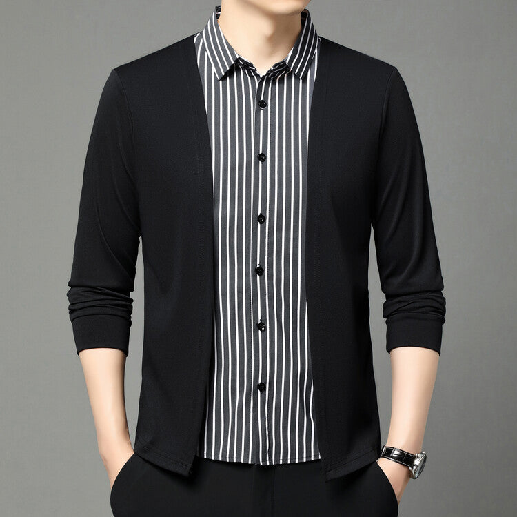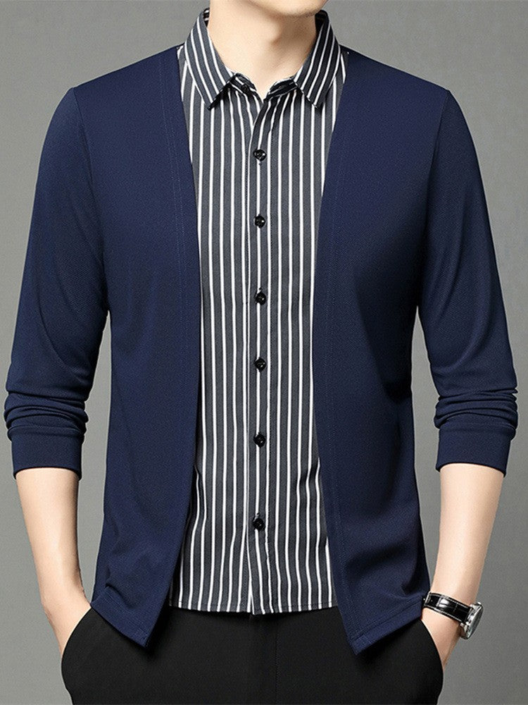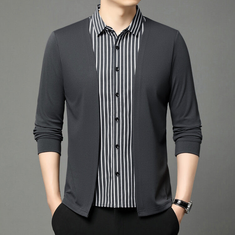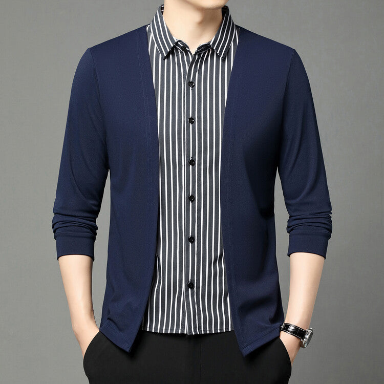 zd269-Men's fake two-piece lapel long-sleeved sweater