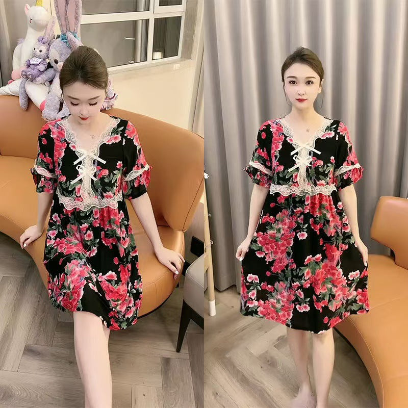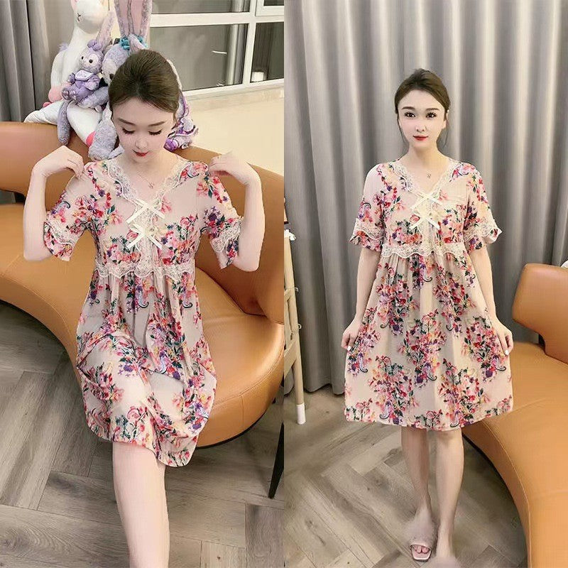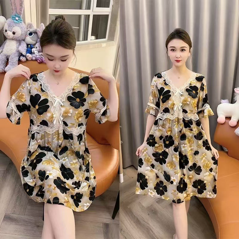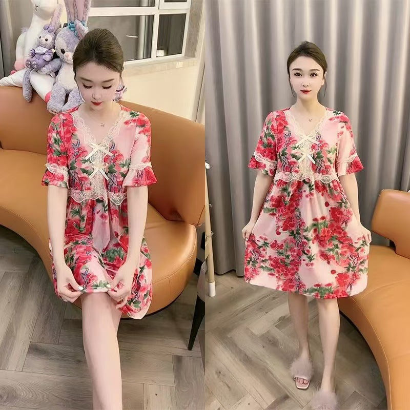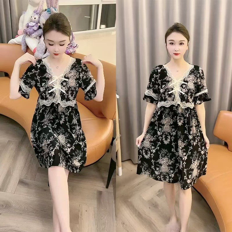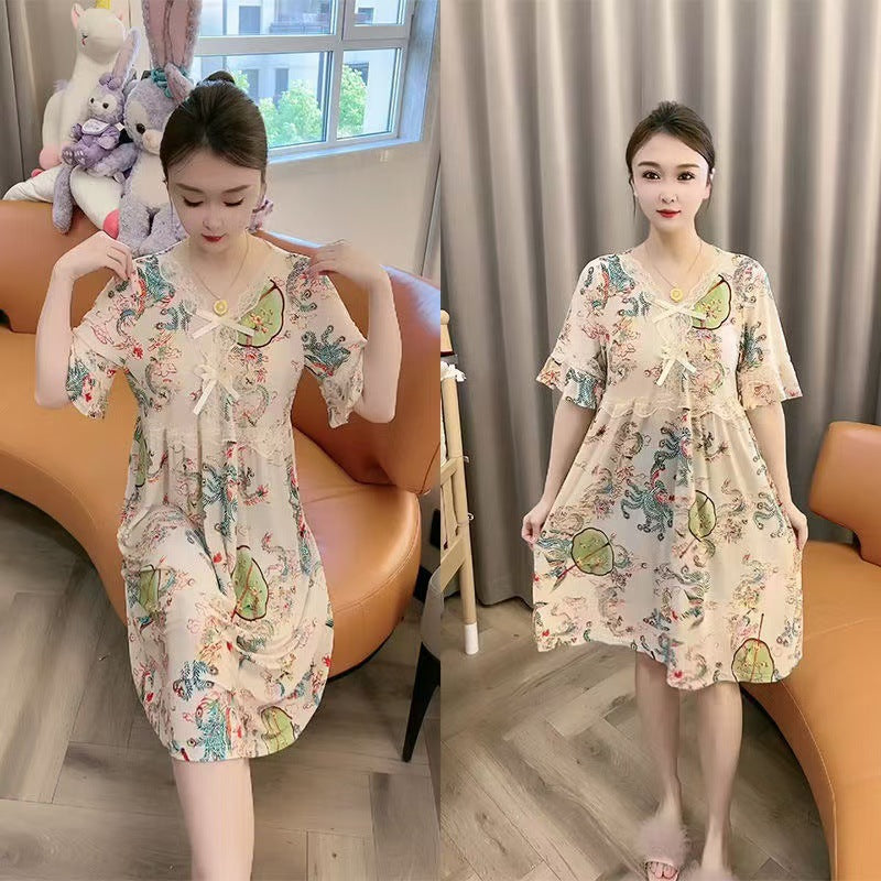 zp581-Ladies new lace bow loose nightdress