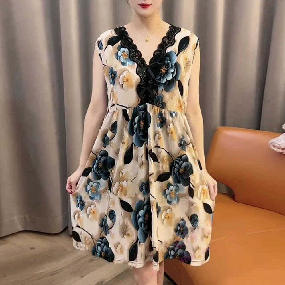 zp583-Ladies Lace V-neck Loose Nightdress