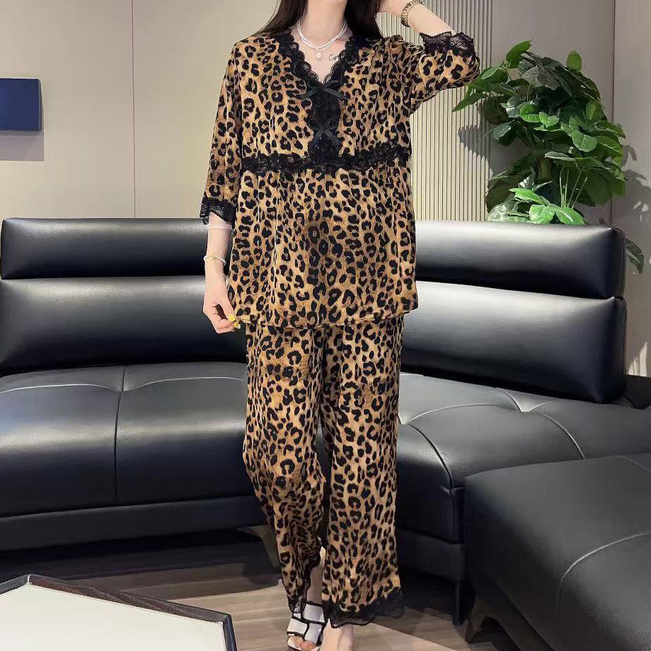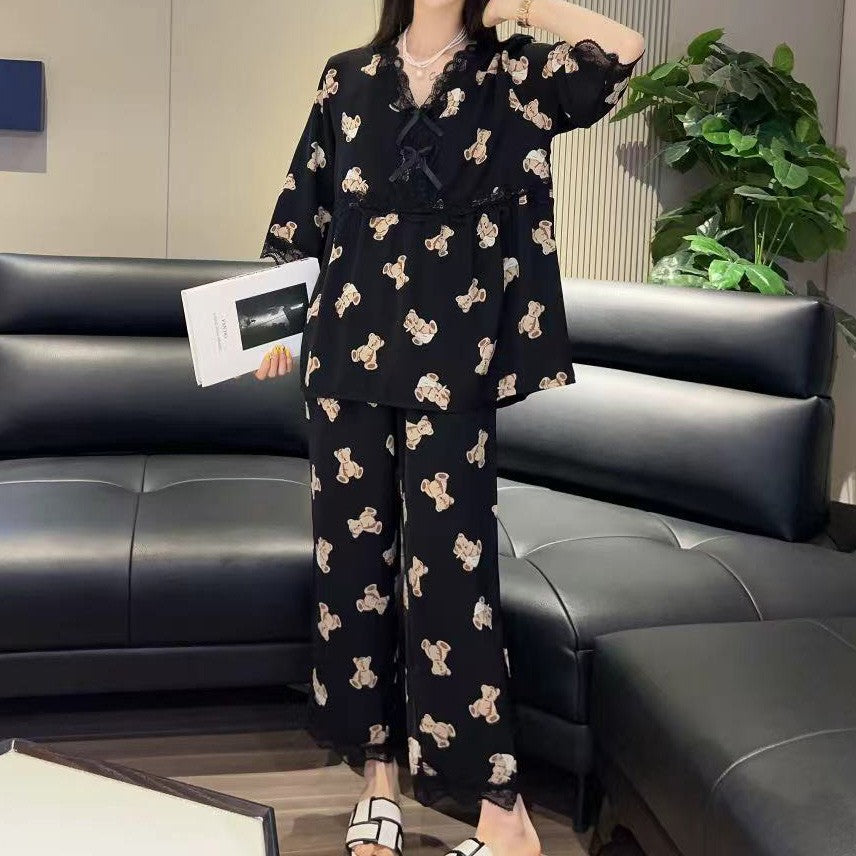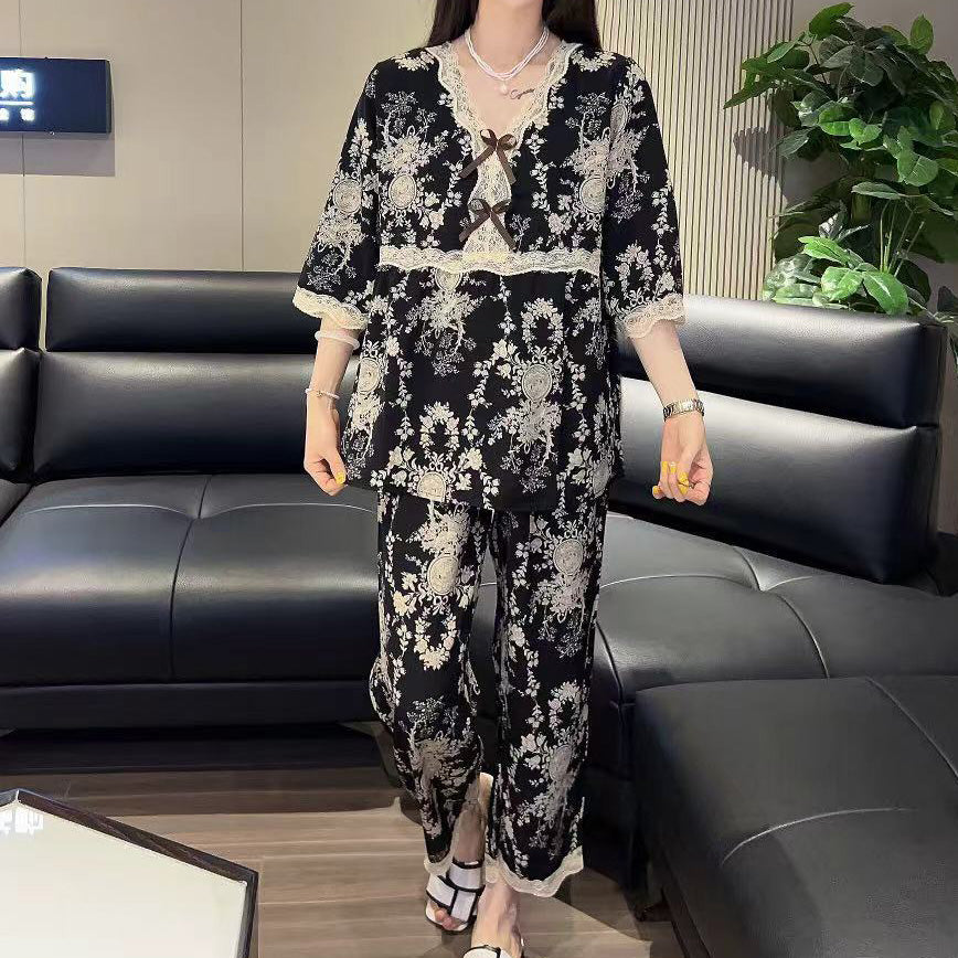 zp592-Lace Bowknot Fashion Loose Women's Pajama Set