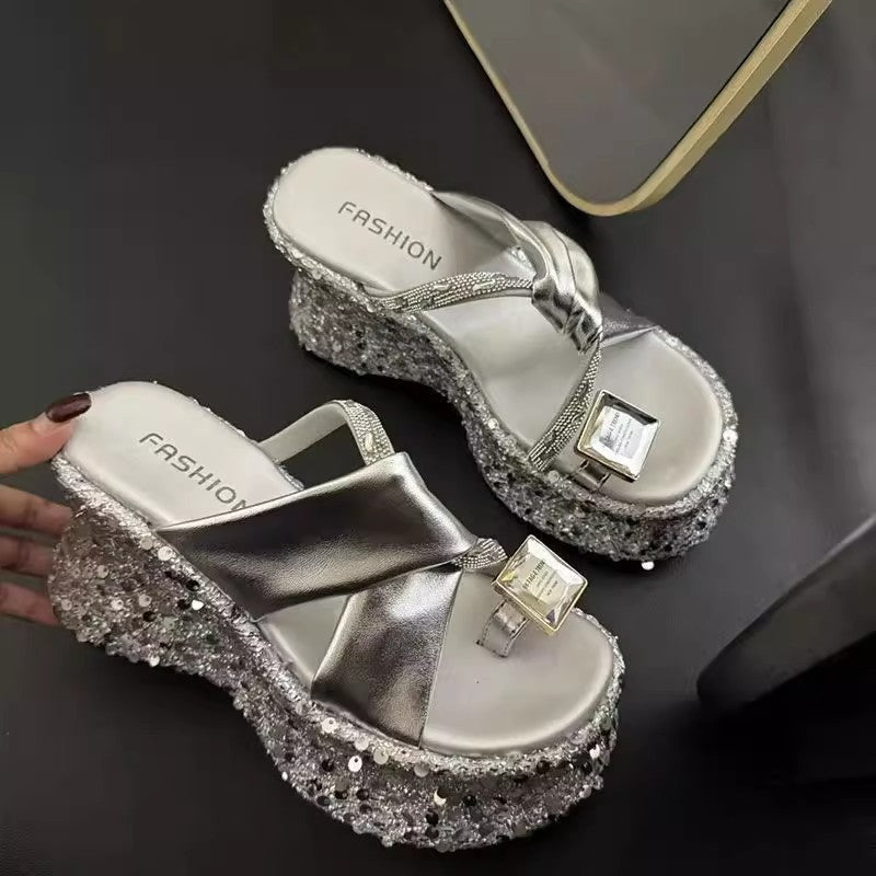 zp639-Summer Fashion Rhinestone Casual Platform Wedge Sandals