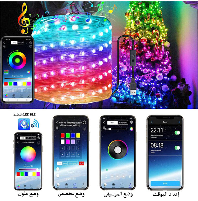 مصابيح سلسلة تعمل بالصوت، مصابيح سلكية جلدية (10 أمتار)