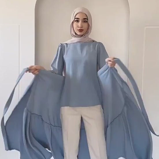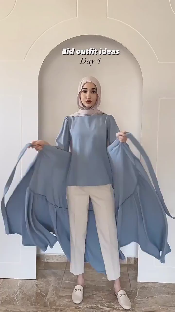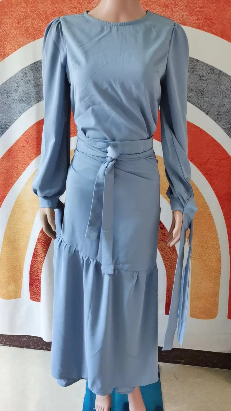 بدلة نصف فستان أنيقة بأكمام طويلة وأربطة