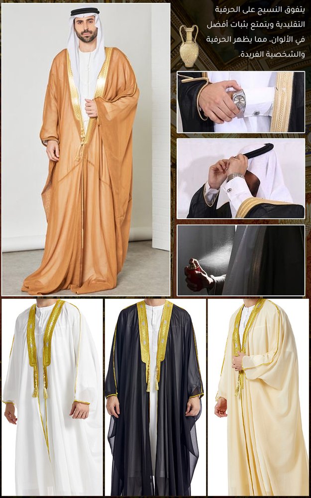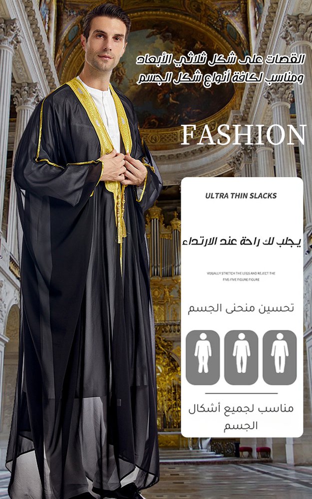 جلابية رجالي فاخر أنيق ومطرز بطباعة ذهبية