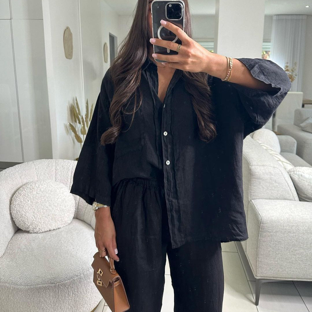 ae618-Summer women's breathable cotton and linen suit