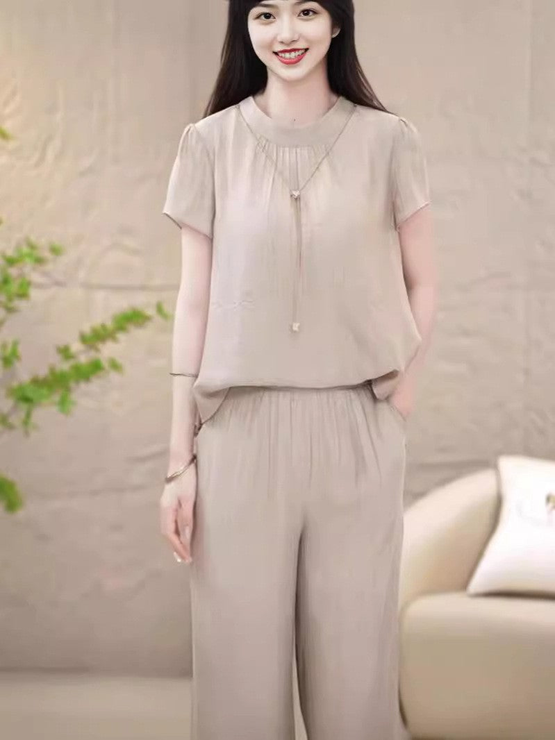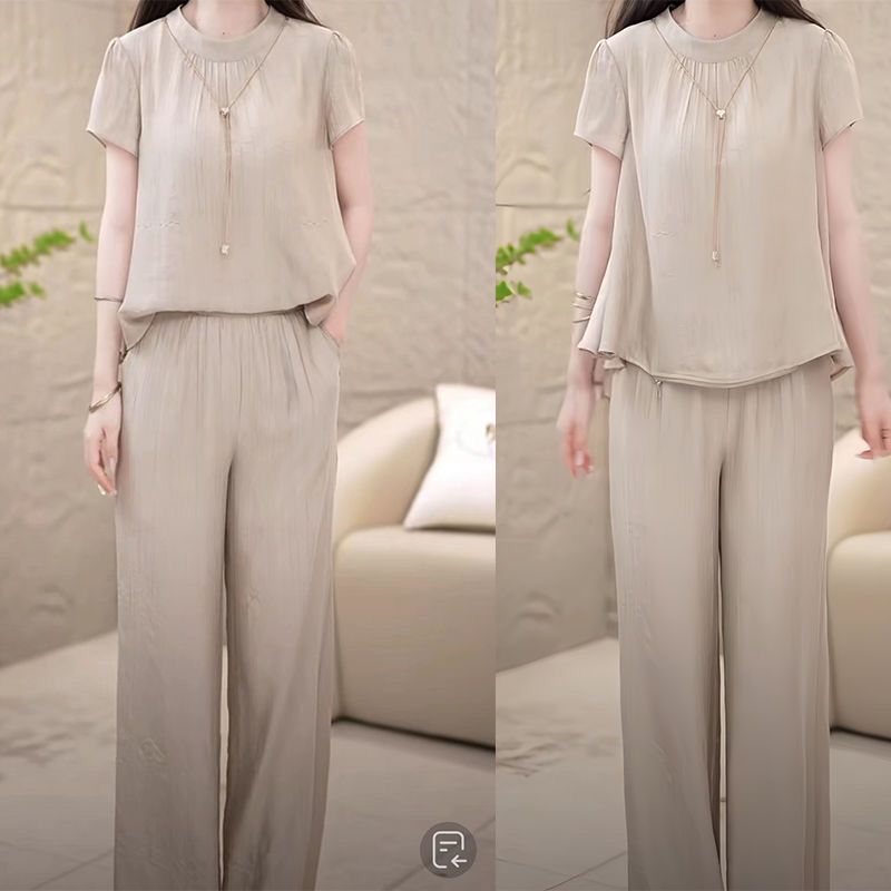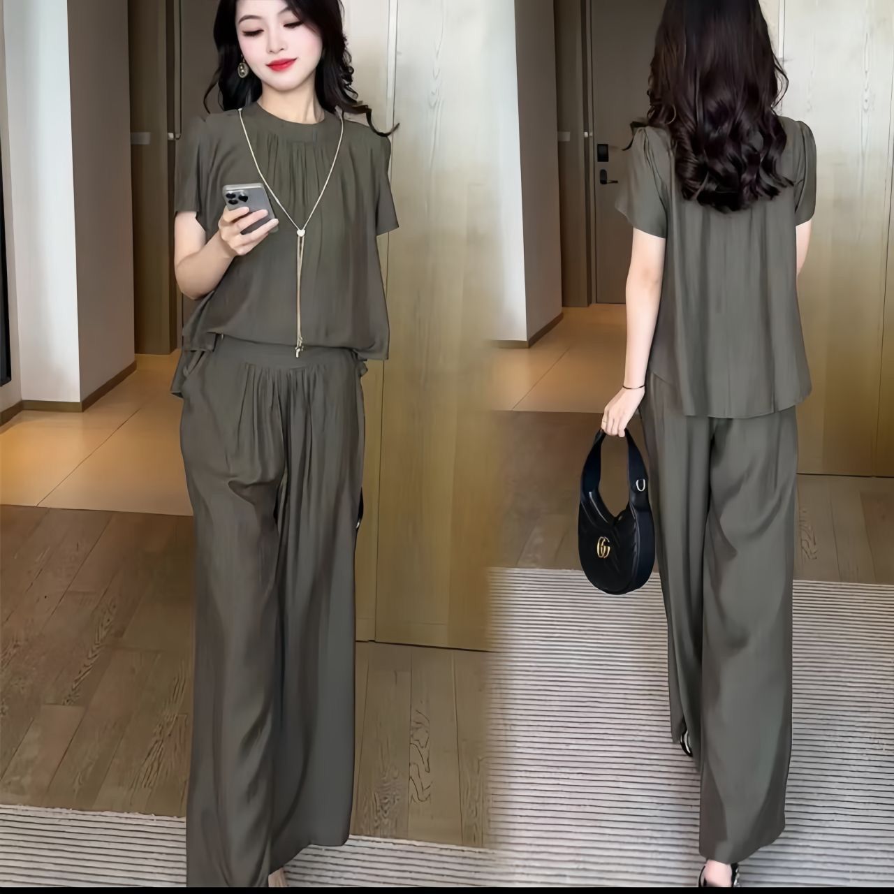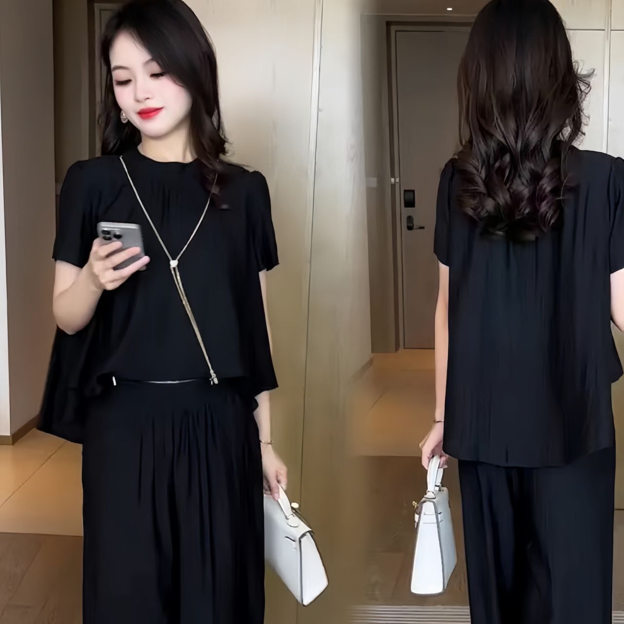 ae626-Summer loose slim short-sleeved wide-leg pants two-piece suit