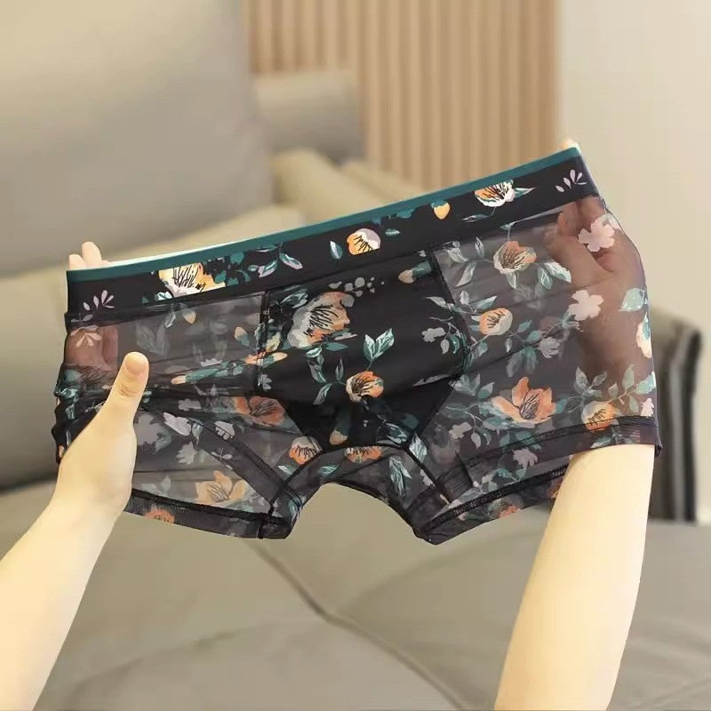 ae702-Men's summer thin mesh transparent boxer briefs
