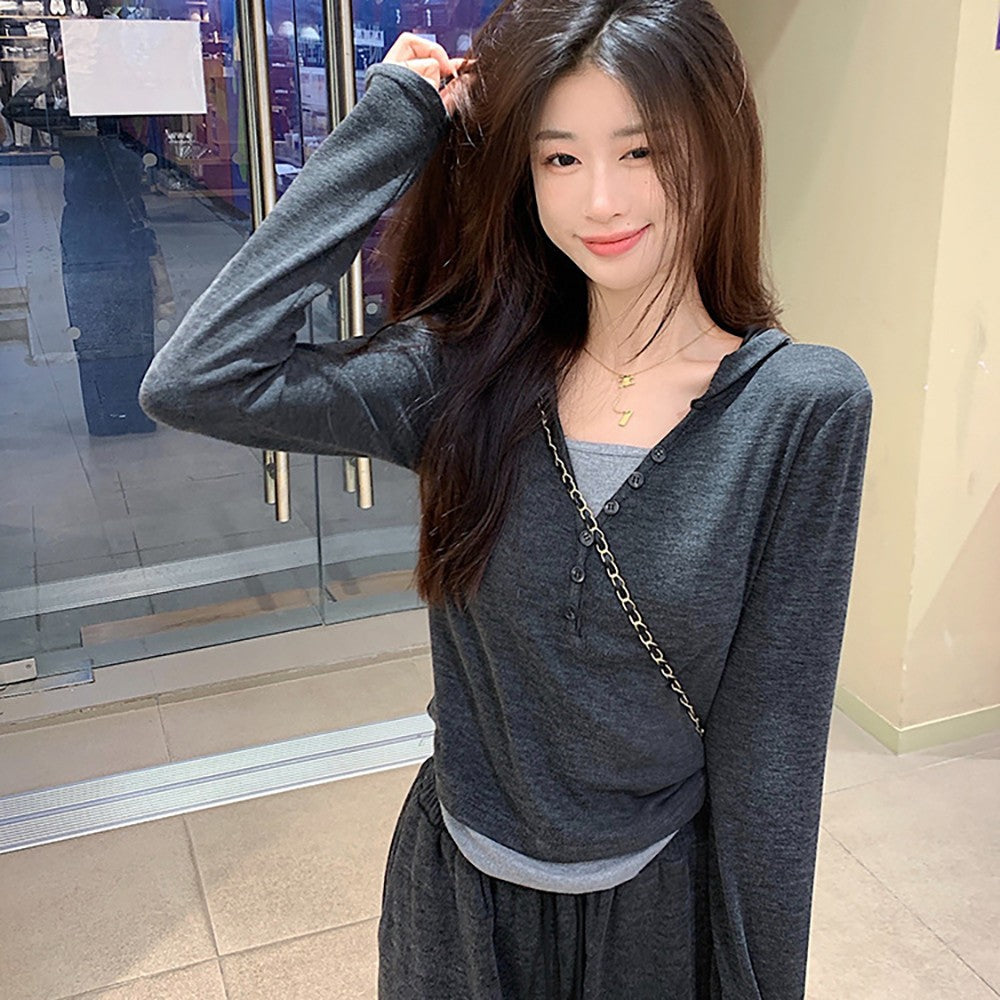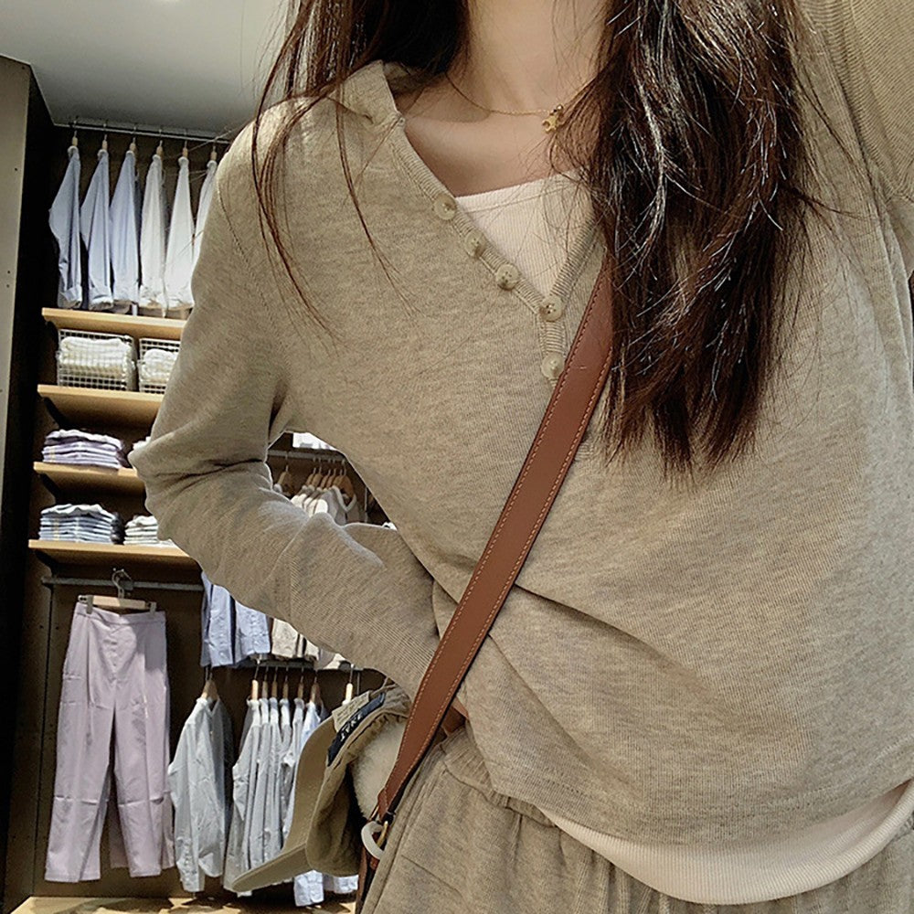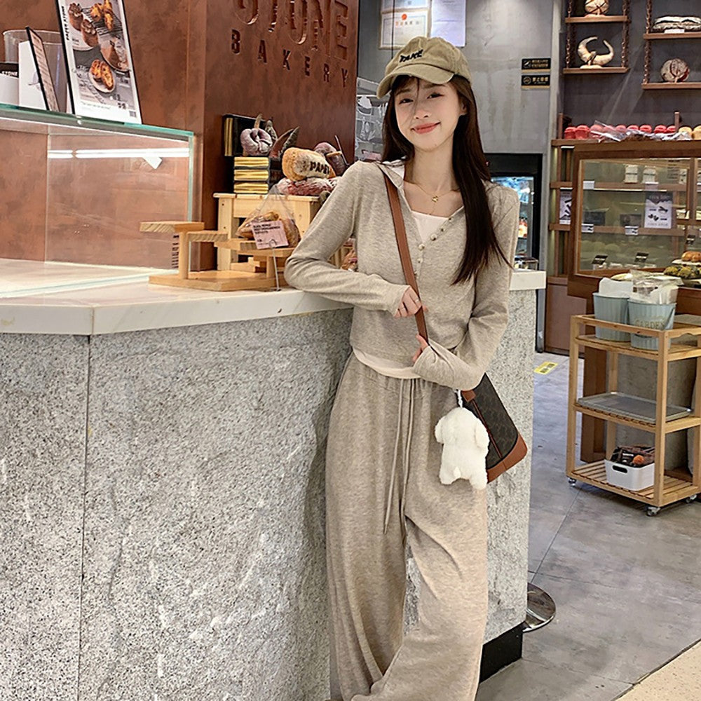 طقم من قطعتين من سويت شيرت وبنطلون كاجوال عصري بغطاء للرأس