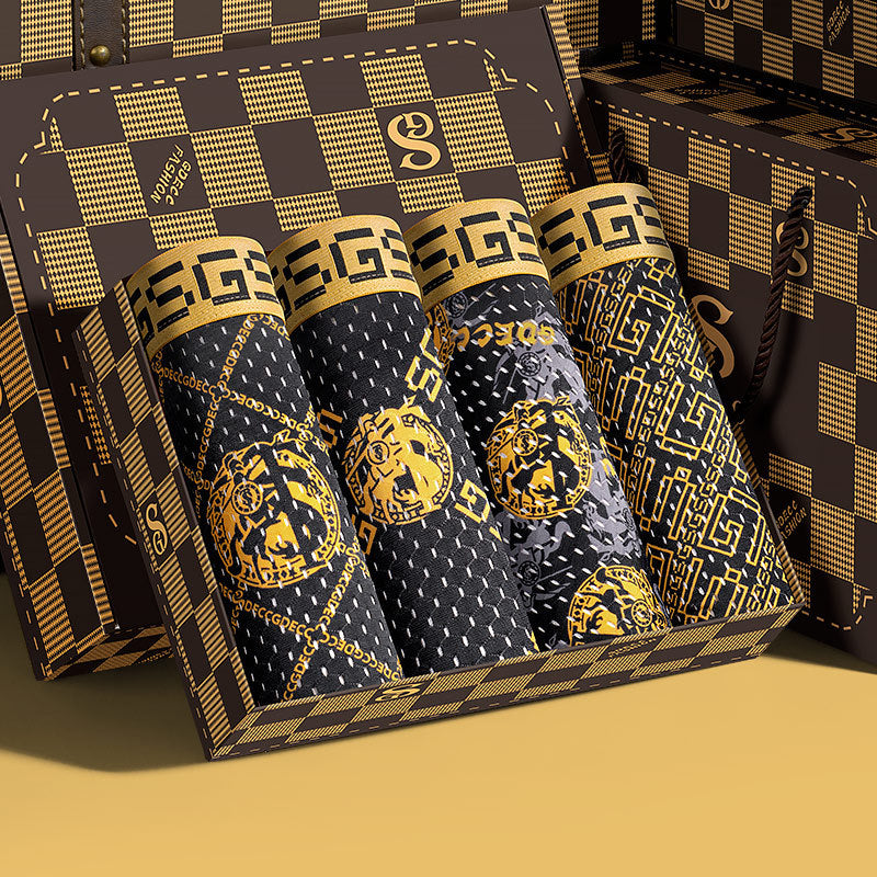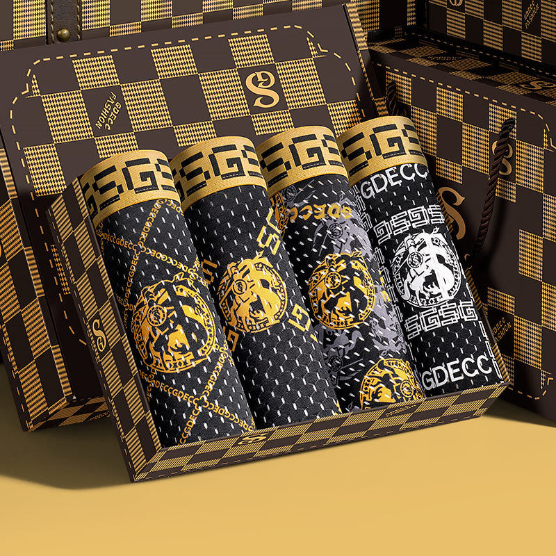 ملابس داخلية رجالية من الحرير الجليدي 4 قطع هدية