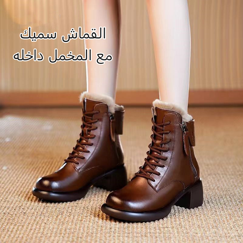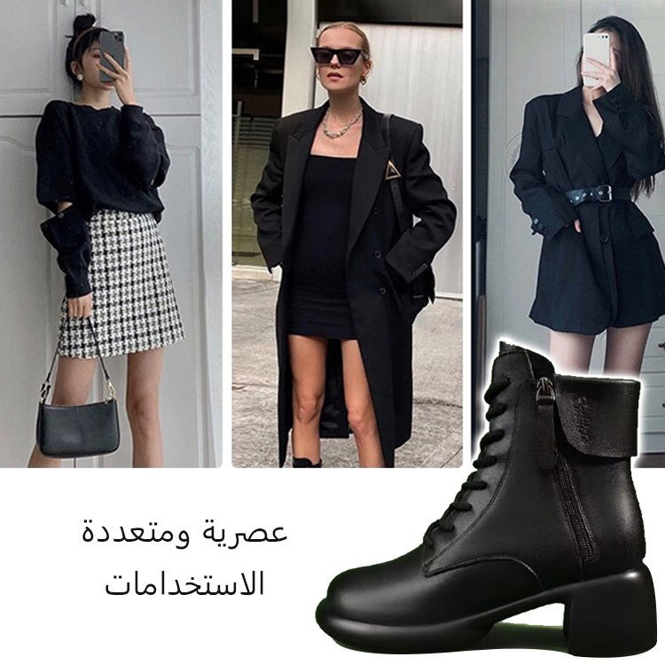 حذاء مارتن بكعب سميك وتصميم عالي الساق للسيدات بطراز كلاسيكي