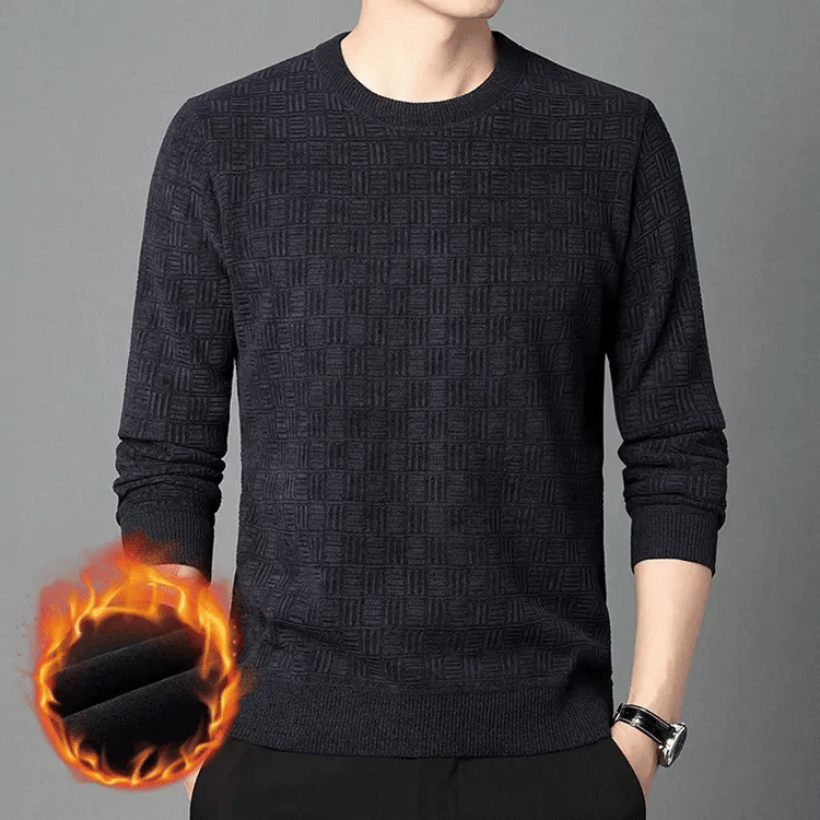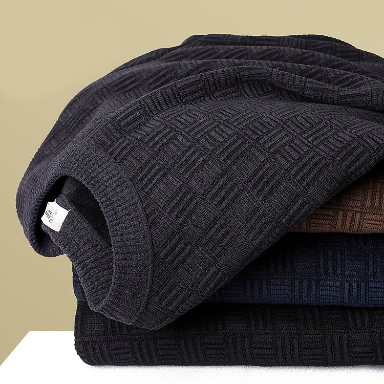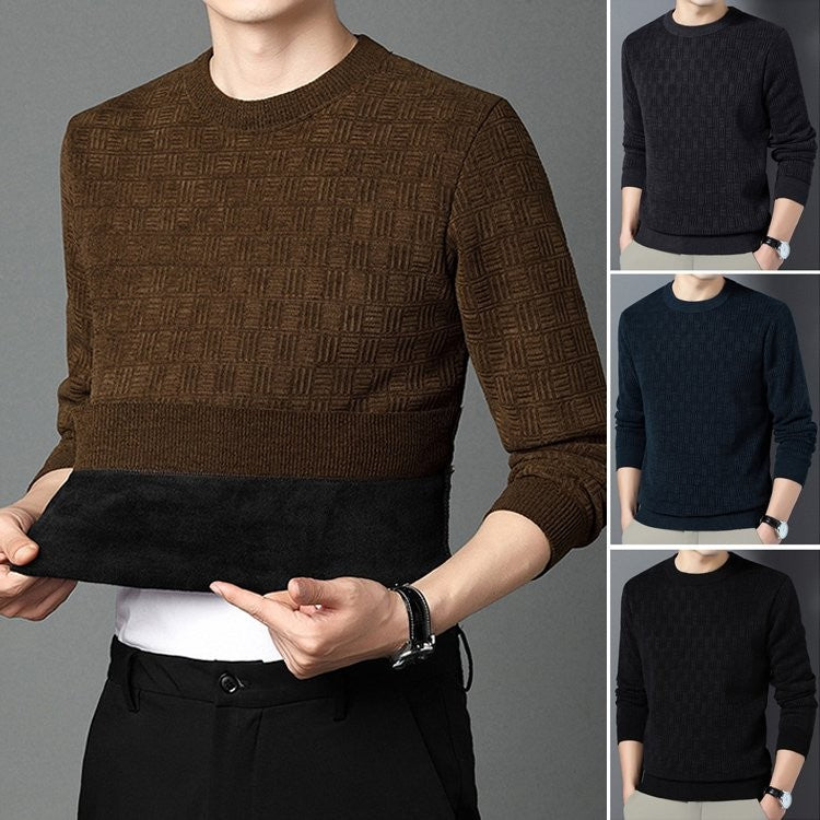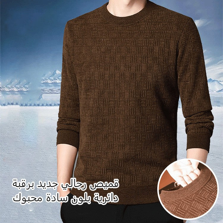 بلوفر مخملي سميك برقبة دائرية بلون سادة قميص سفلي محبوك للرجال